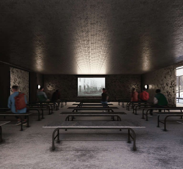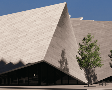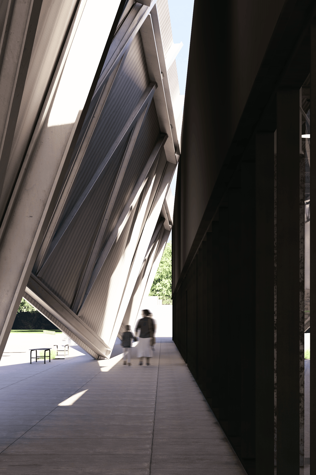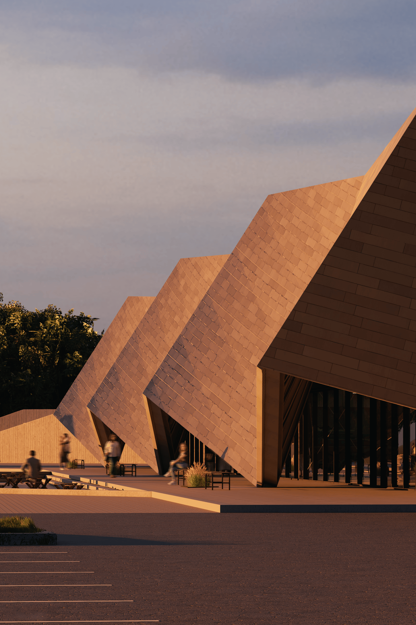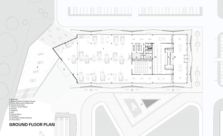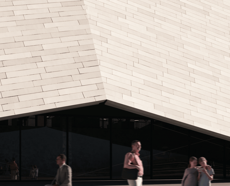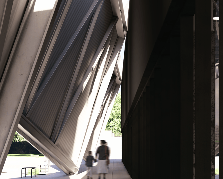 An angular facade references the Leopard 1 ‘s design, and presents itself as a physical fortification of armour that establishes a link to the materiality, purpose, shape, and form of tanks.
