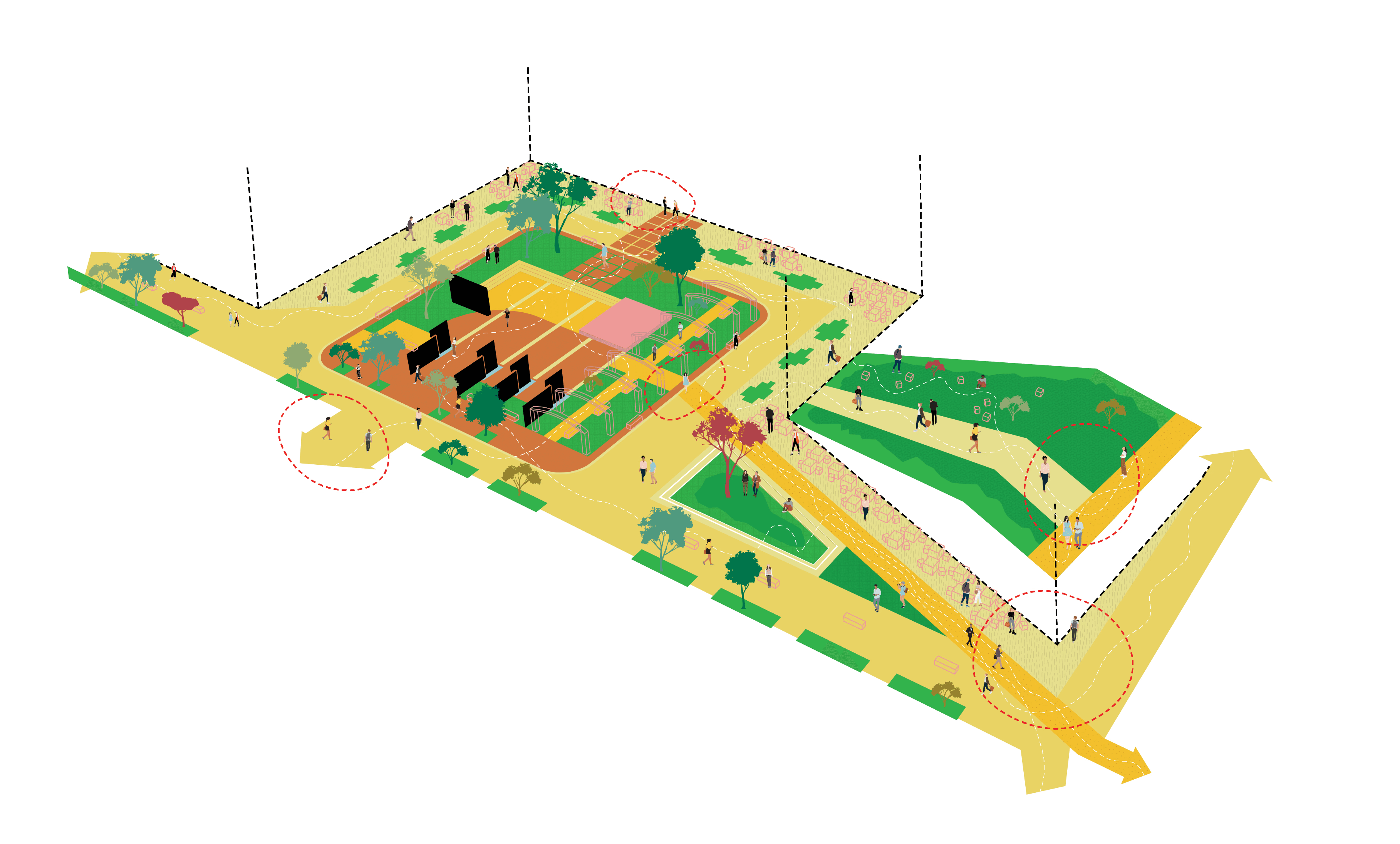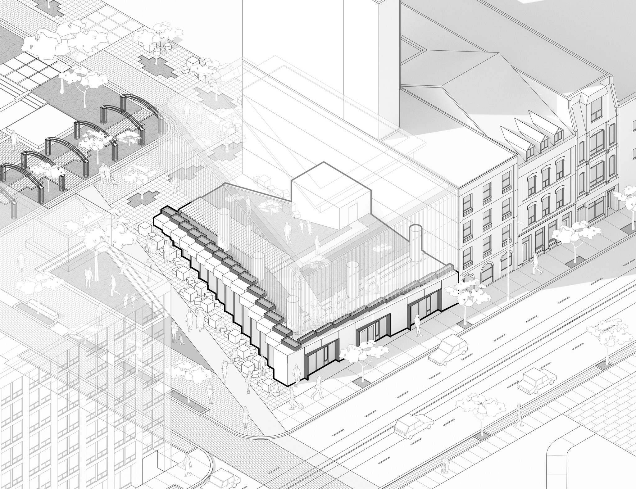 By weaving together these physical and atmospheric elements with the rich historical narratives of the site, the space becomes a catalyst for both personal moments and collective experiences. The site becomes an integral part of urban life where the opportunity for serendipitous interaction presents itself in a variety of meaningful ways.