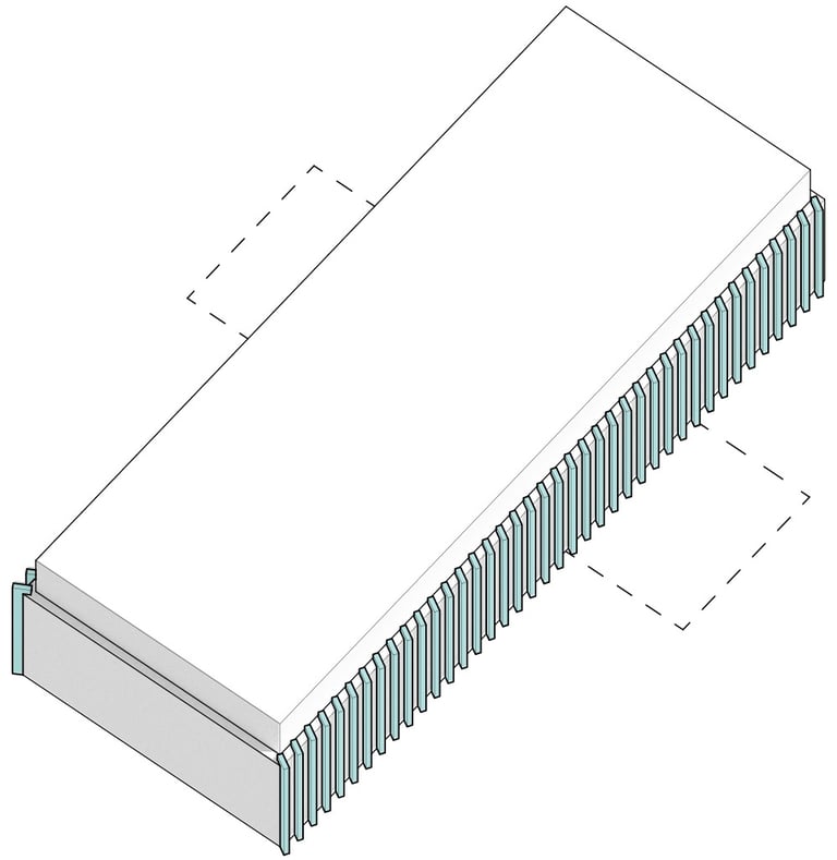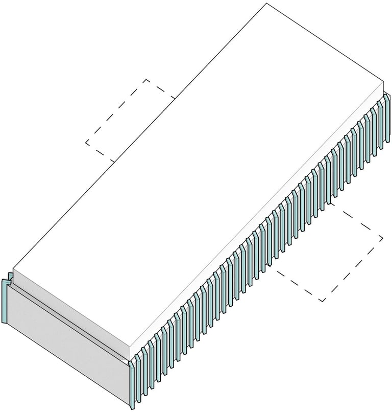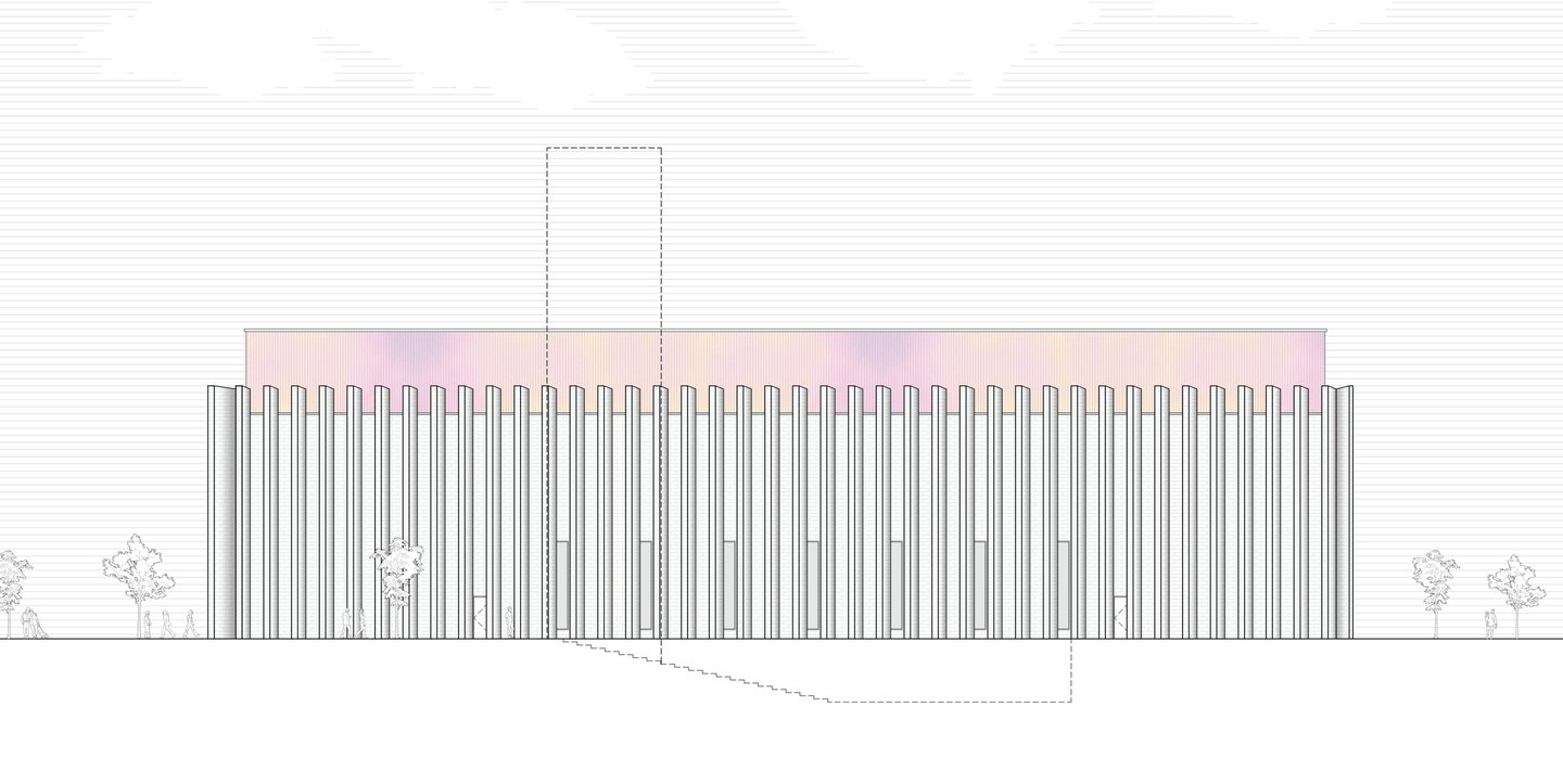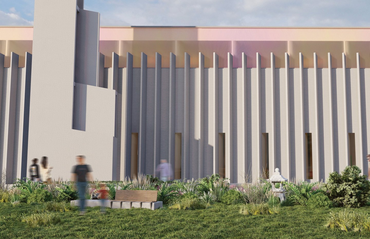 The two wings are recessed into the ground to allow light and exterior access from the adjacent priory and community spaces.