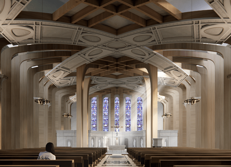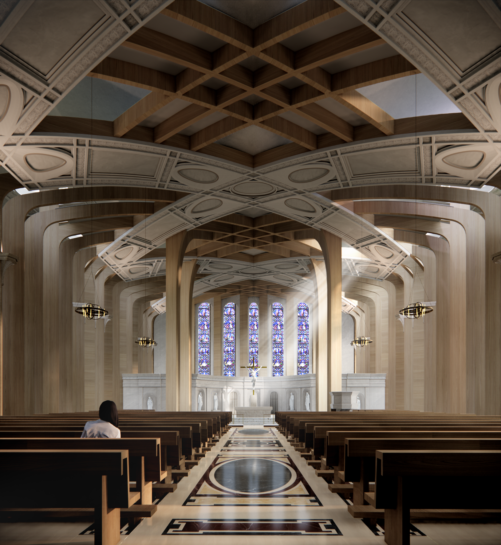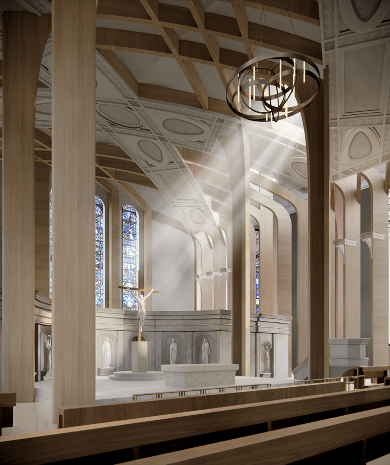 The church plan is defined by a traditional cruciform shape, reflecting the long established principles of sacred spaces.