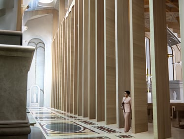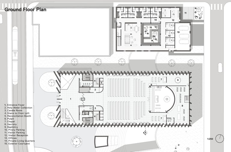 The Church of St. Luke is an architectural design project that seeks to harmonize the solemnity and symbolism of traditional Christian liturgy with the clarity and expression of contemporary form. Rooted in the rich spiritual and artistic legacy of St. Luke—patron saint of artists, physicians, and iconographers—this church is conceived not only as a house of worship, but as a vessel of embodied beauty, storytelling, and sacred creativity. The architectural language of the building draws inspiration from early Christian basilicas and Eastern iconographic traditions, yet it is reinterpreted through a minimalist, modern material palette that emphasizes light, space, and texture. The structure is defined by a restrained exterior—monolithic yet welcoming—contrasted by an interior that unfolds in layers of curated artistic experience. Natural light is choreographed to wash over textured walls and sacred images, evoking the divine through illumination.