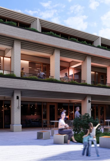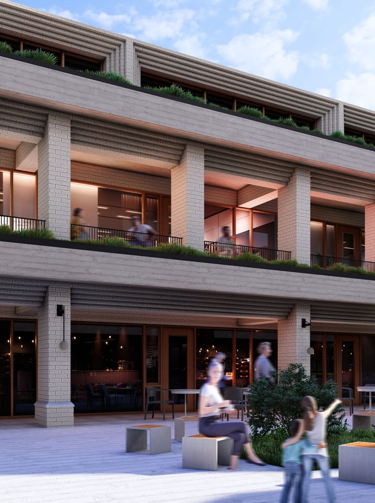 Slicing paths through the site create stronger connections to the surrounding neighbourhood and encourage pedestrian interaction.