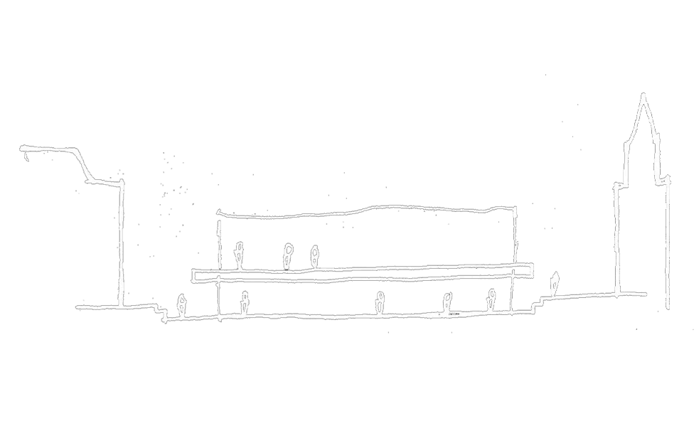 The central pedestrian space establishes a physical and visual connection between United Church, and St. Michaels Cathedral located across the street. The immersive atmosphere between these two significant buildings creates an engaging space for serendipitous activity to occur by leveraging the latent historical narratives of old Toronto and Church Street.